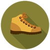 A wavy line formed by prints of hiking boots. The prints are smaller as they're more distant.